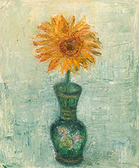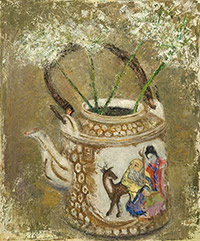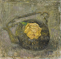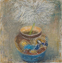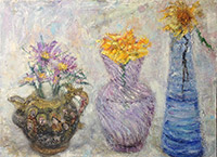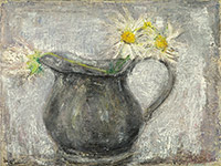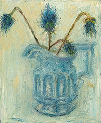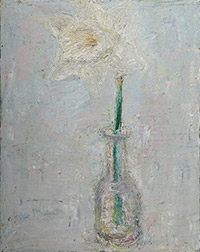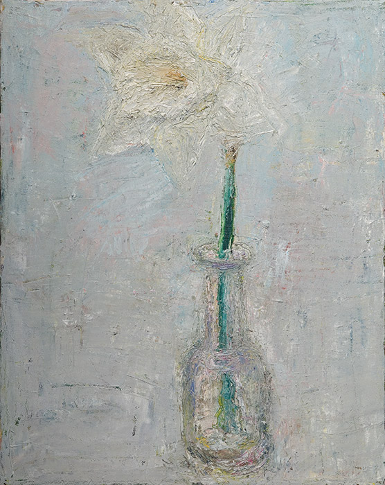 In order to disrupt the near-photographic realism of my earlier work, I've focused on the relationship of the subject to the space it inhabits. In each painting, a single vase holds its cargo of blossoms and exists in relation to the atmosphere that surrounds it.